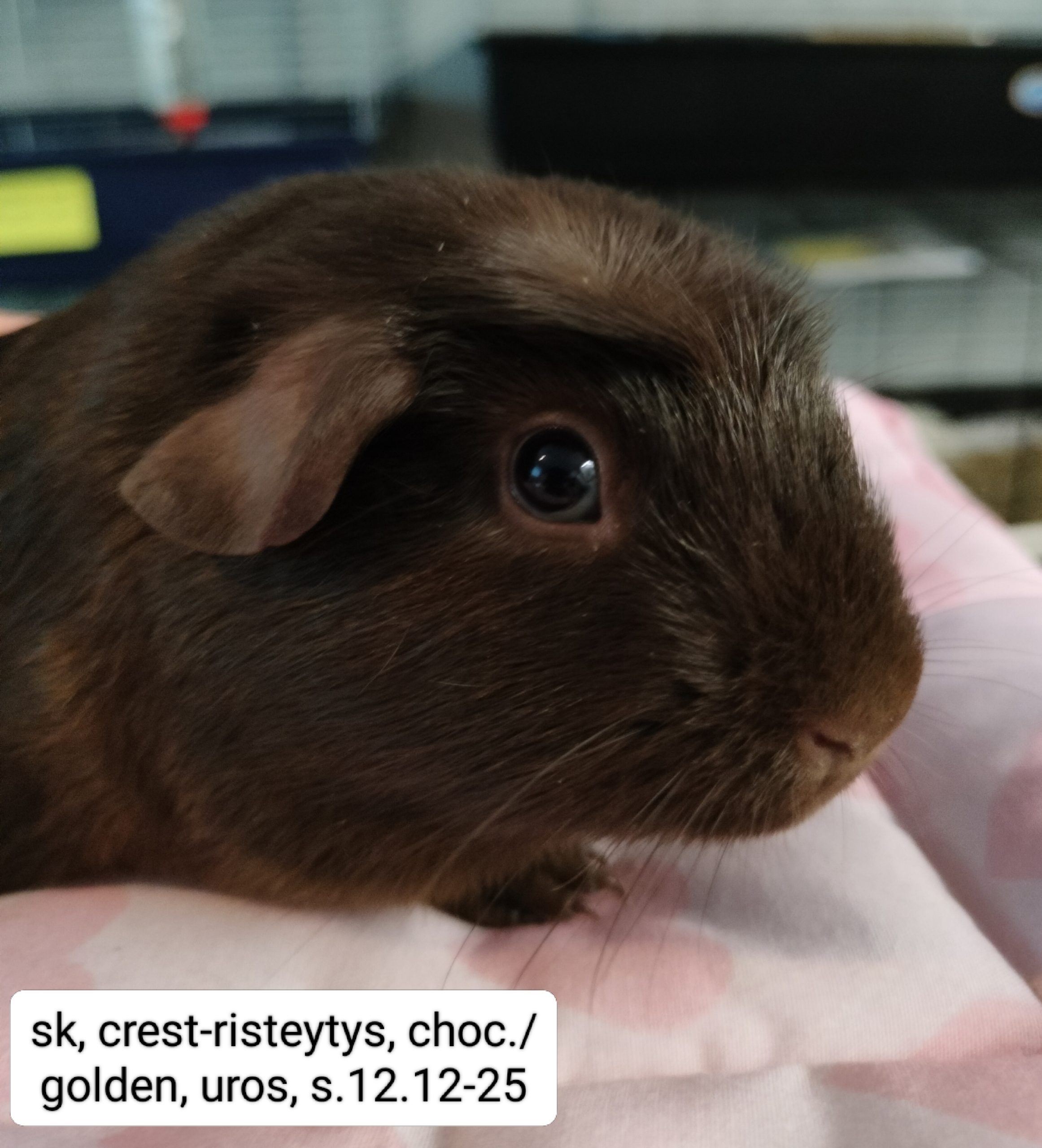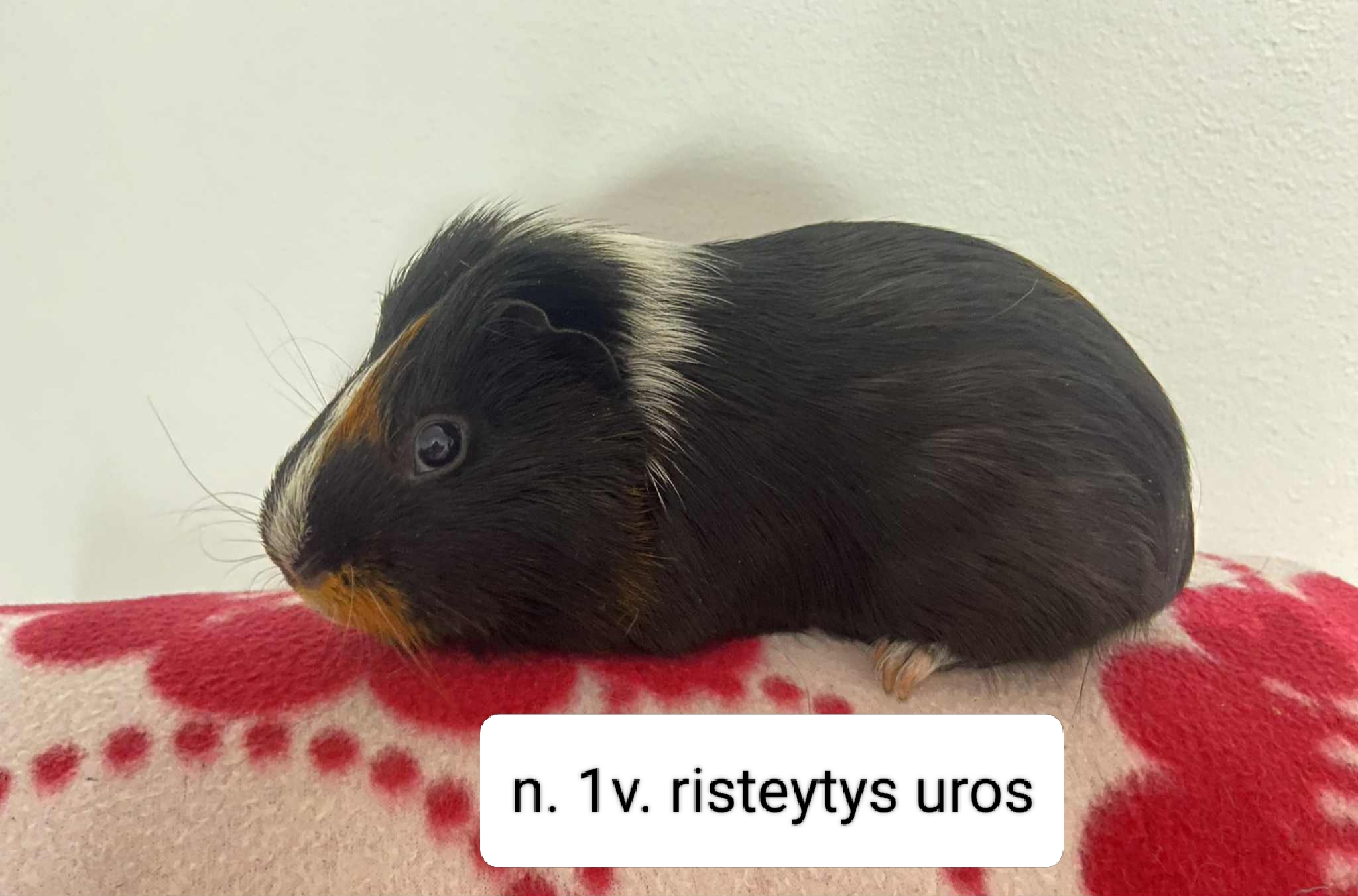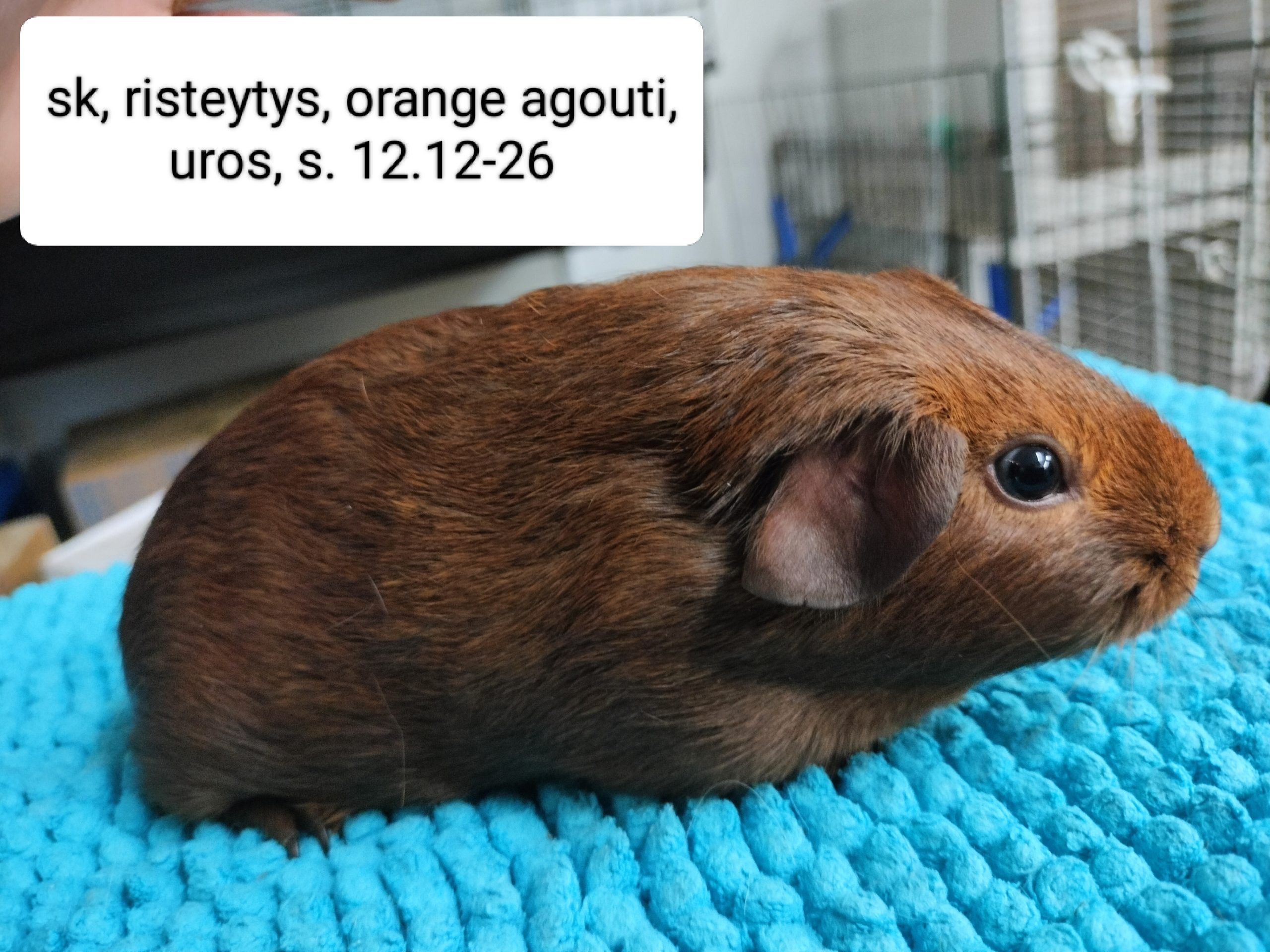 Isällä on fatty-eye (rasvaa silmän alaosassa), joka ei haittaa marsua ja yleensä katoaa, jos marsu ei ole ylipainoinen (niinkuin tämä marsu nyt hieman on). Isällä on myös ihossa herneen kokoinen irtonainen patti, jota tulee seurata. Näistä syistä isästä en pyydä maksua.