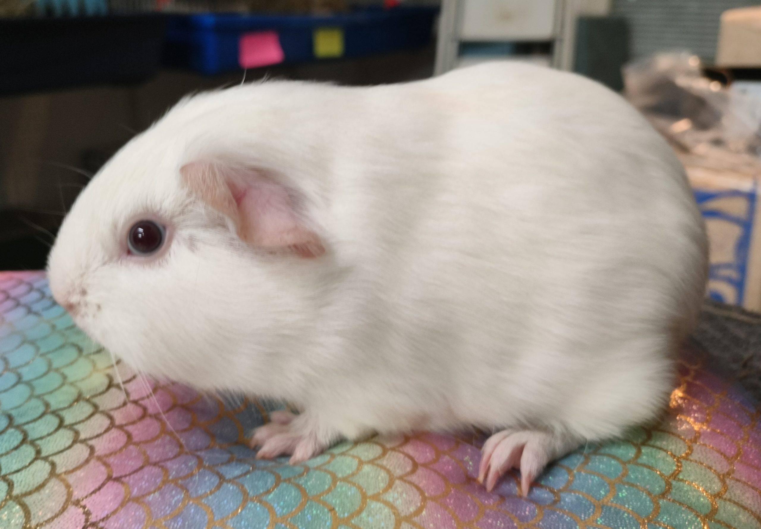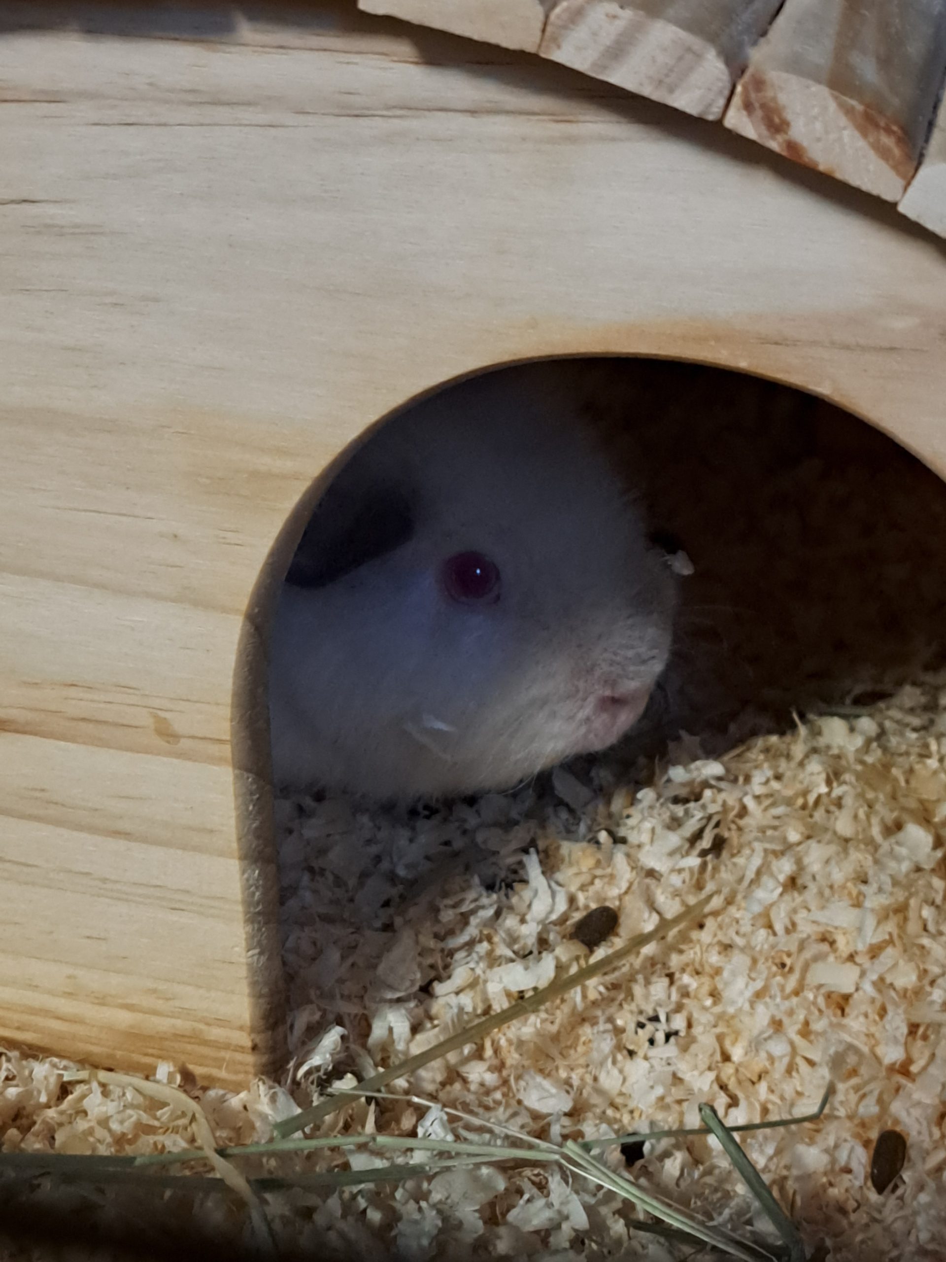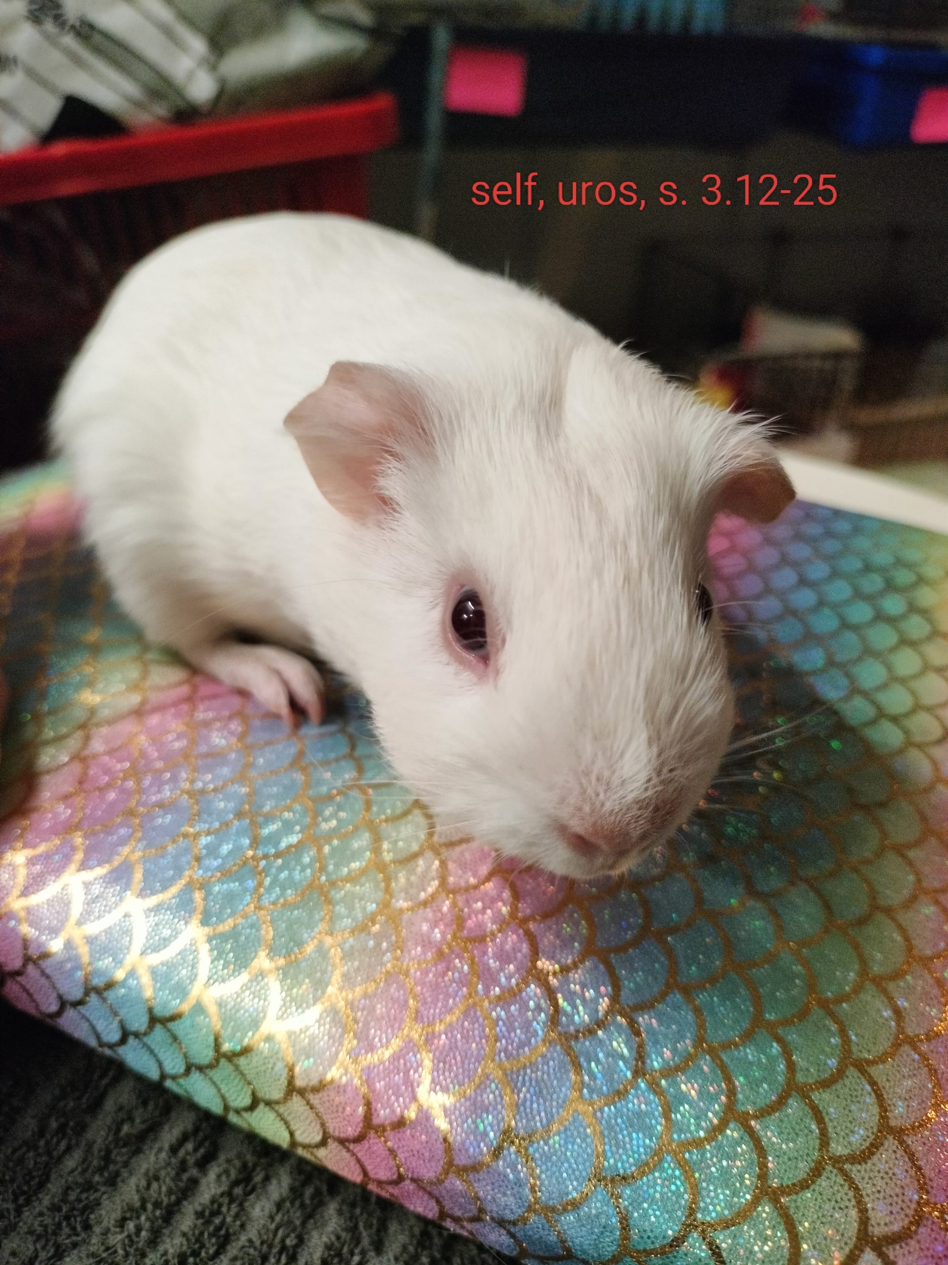 Isällä on fatty-eye (rasvaa silmän alaosassa), joka ei haittaa marsua ja yleensä katoaa, jos marsu ei ole ylipainoinen (niinkuin tämä marsu nyt hieman on). Isällä on myös ihossa herneen kokoinen irtonainen patti, jota tulee seurata. Näistä syistä isästä en pyydä maksua.